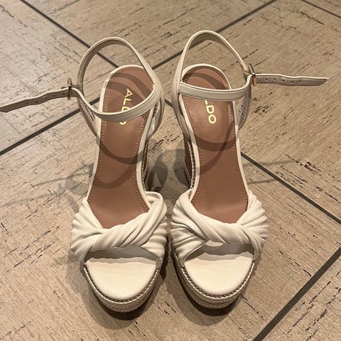 Selger høye hæler fra Aldo. De er lyserosa med steiner rundt kanten og på sløyfa foran. Mangler tre enkelte steiner, se bilder. Utenom det så er de av god stand. Brukt et par ganger.