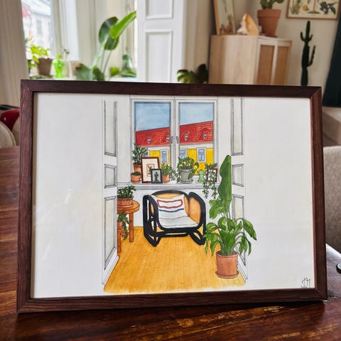 Maleriet er innrammet med en håndlaget ramme fra Grundfeldt AS, et norsk møbelsnekkerverksted. Verket befinner seg fysisk hos Grundfeldt AS i Oslo, og kan vises frem der og eventuelt hentes.