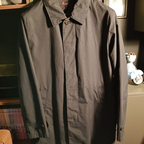 GANT jakke i blå farge, størrelse S for menn. Jakken har en rutete innerfôr og glidelåslomme. Materialet er slitesterkt og egnet for utendørs bruk. VÅRJAKKE