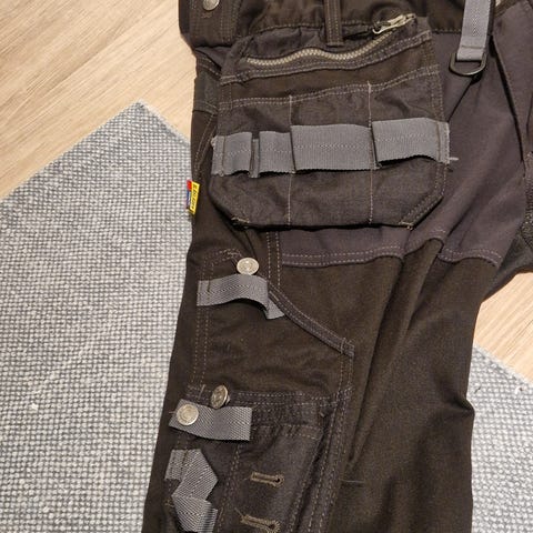 Svært lite brukt fôret arbeidsbukse fra anerkjente Blåkläder. Det er noen malingsflekker på buksa, ellers ingen slitasje. Det er 3/4 høy glidelås i beina, 2 stikklommer foran, én lomme bak og én smal lomme for verktøy på høyre lår.