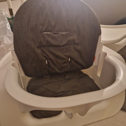 Både brett , rygg og barnesete kan tas av sånn at stolen fungere også for større barn 😊