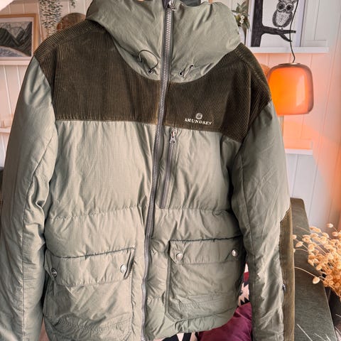 Vanntett og har to-veis glidelås. 90% andedun og 10% fjær