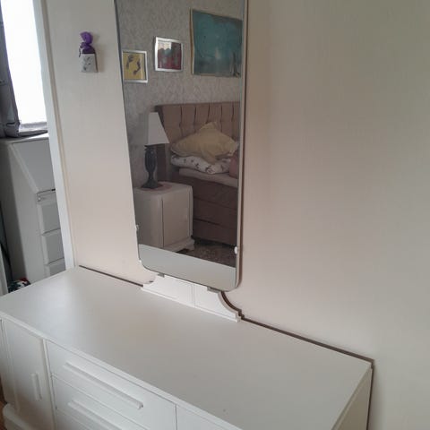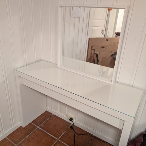 Speil med skuffer og bord