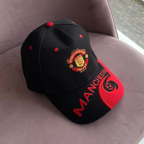 Adidas Manchester United fotballcaps i størrelse One Size. Capsene kommer i to farger: rød med tekst og logo, samt svart med brodert logo. Materialet er ikke spesifisert, men capsene er designet for fotballinteresserte.