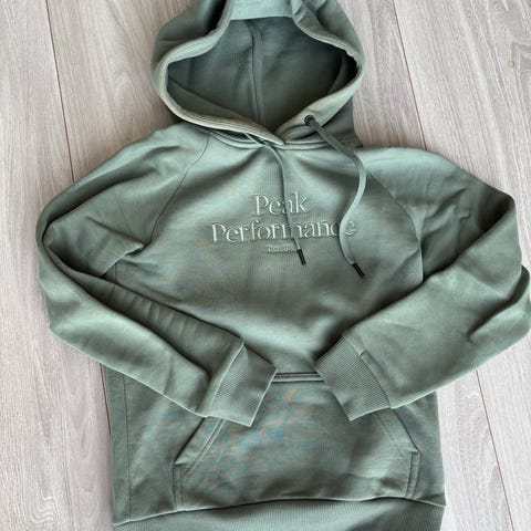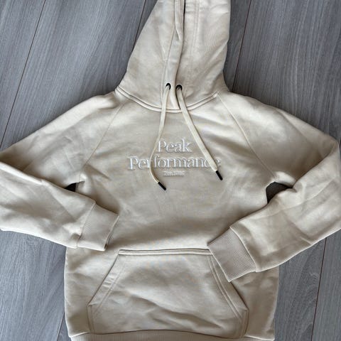 Peak Performance hettegenser i størrelse XS. Hvit farge med glidelås foran og hette med snor. Helt ubrukt