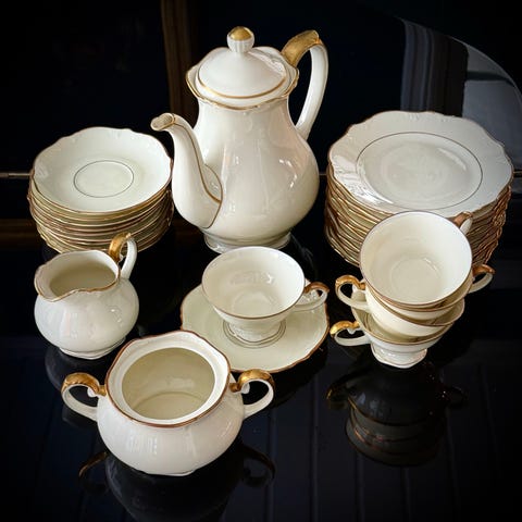 Vintage porselensservise fra Hutschenreuther Hohenberg. Trolig antikk tysk.