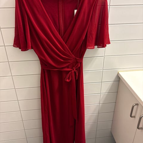 Mangler en hempe for å feste midjebelte, men beltet satt helt fint uten dette da jeg brukte den.