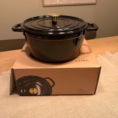 Ubrukt mørk blå Vinga of Sweden avlang støpejernsgryte 3,5L selges. Kom gjerne med bud. Må hentes i Oslo helst.