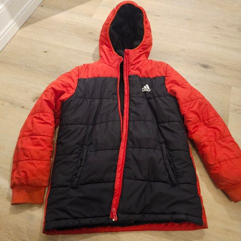 Adidas Originals Padded Jacket i svart farge, størrelse 146, egnet for barn og unisex. Jakken har polstring for ekstra varme, hette og glidelås foran. Materialet er slitesterkt og designet for å gi komfort og beskyttelse mot kulde.