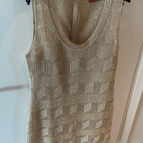 Ubrukt kjole str XS /S heklet i 100% bomull selges for 200,-kr. Overvidde 82 cm. Hel lenge fra skulder 92 cm