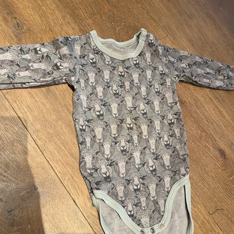 Nydelig body fra Color Wool i str.68. Hvit med rådyr motiv.