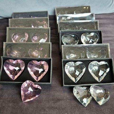 Helt ny uåpnet pose med rosa hjerter til bordpynt.