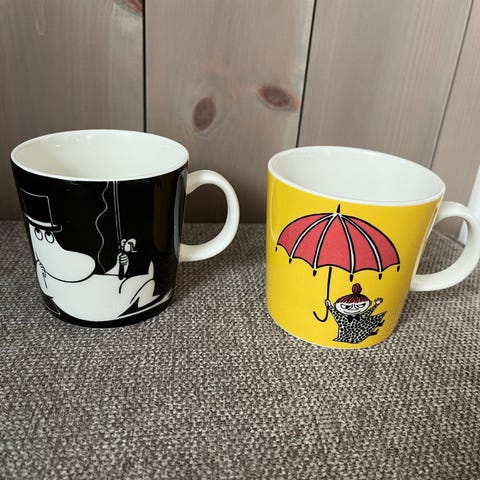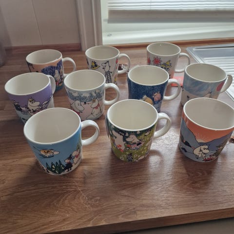 Reduserer Mummikopp samlingen min, og selger derfor meget pent/knapt brukte Arabia 0,3 l keramikk Mummi kopper. Ingen mangler eller skader, fremstår som nye. Selger også noen nye kopper med etiketter på.