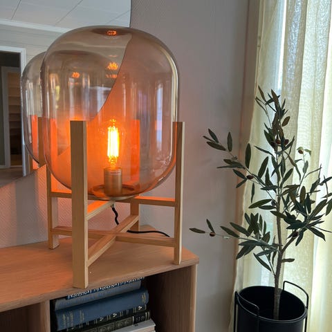 Flott hvit bordlampe kjøpt på Bohus, lampen er ikke brukt og er som ny, høyde 45cm.