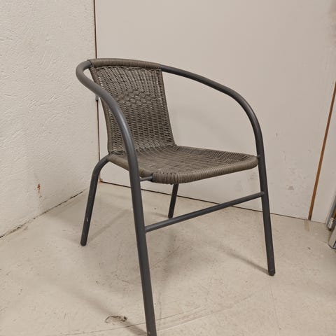 Svart hage stol i flettet materiale med metallramme. Pr/stk 100 kr15 stk 1300 kr