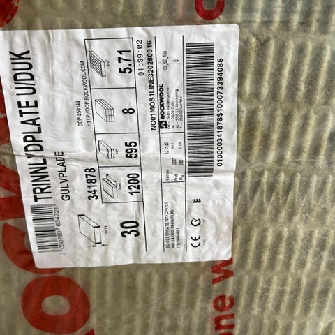 1 pakke 198mm rockwool isolasjon ny uåpnet