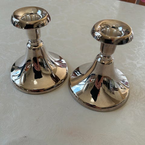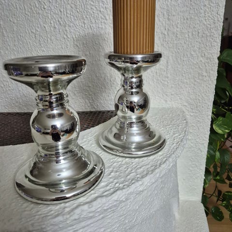 Ukjent merke 2 armet lysholder i nysølv Passer som dekorativt element i hjemmet.