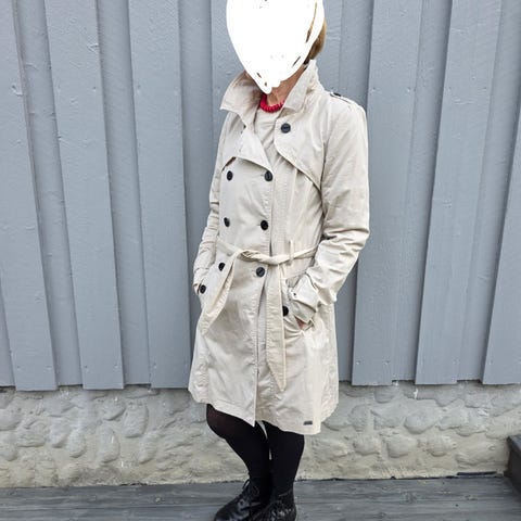 Pent brukt beige kåpe fra vero moda i strl M, passer nok en L også. Ingenting som er ødelagt eller flekker, eneste er litt nupper under armene, men minimalt og kan sikkert fjernes ned nuppefjerner (vist på siste bildet)🌸 Kjøpt ny for 1000 kr.