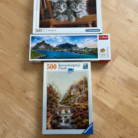 IKEA LATTJO puslespill med 555 brikker, måler 50x70 cm. Fargerikt motiv med ulike figurer og elementer. Egnet for barn fra 6 år og oppover.