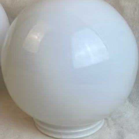 Eldre fin og hvit opal kuleskjerm. Har tilhørt utebelysning.