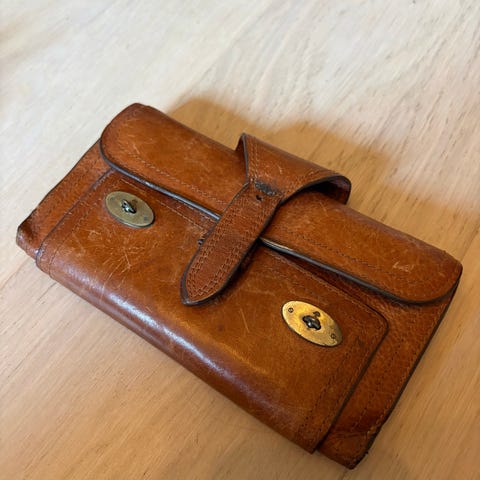 Mulberry Lær Dame Lommebok i brun farge. Lommeboken er laget av lær og har flere lommer for oppbevaring av kort, mynter og sedler. Den har en knappelukking og en glidelåslomme for ekstra sikkerhet.