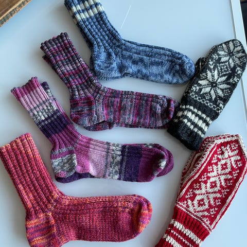4 par ullsokker og 1 par ullvotter. Har alt for mye hjemmestrikk, så må kvitte meg med litt. Str på ullsokker 38-40 ish.