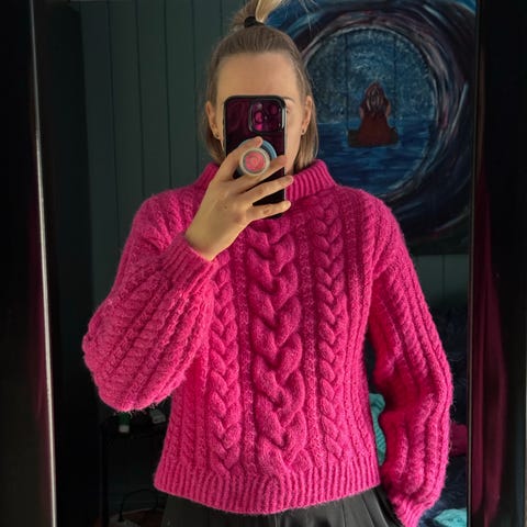 Pippilotta genser selges. En fin flettegenser selges, den er bare prøvd på, så helt ny. Selges da jeg har nærmere 50 strikkagensere…