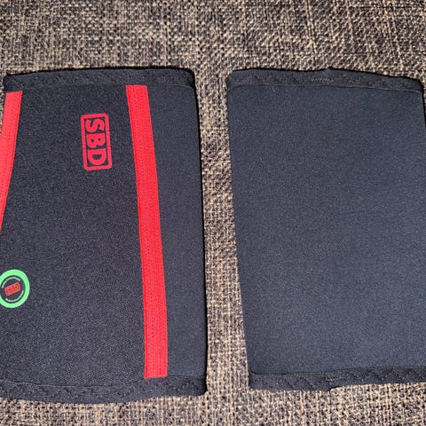 SBD Kompresjon elbow sleeves i svart med røde detaljer. Laget av elastisk og pustende materiale for støtte og kompresjon under trening eller konkurranse. Designet for å gi muskelstøtte og redusere tretthet i leggene.