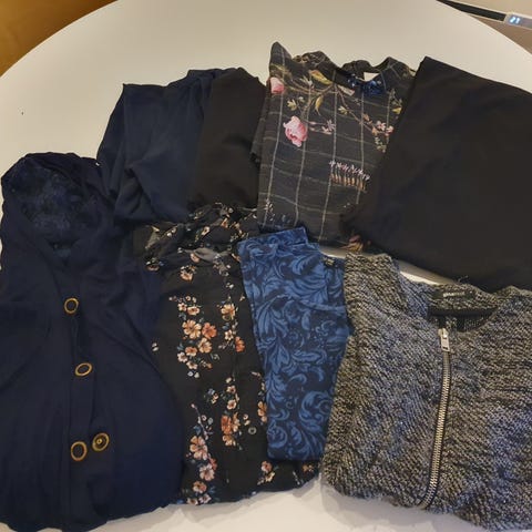 Pakke med klær til dame (enten nye eller nesten nye). Størrelser er oppgitt med bilder.