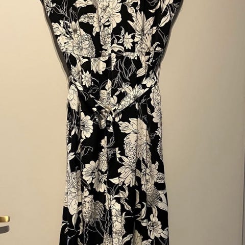 Newbie Sommerkjole i hvit farge, størrelse L for kvinner. Kjolen har et mønster med blomster og er laget av lett materiale, egnet for sommerbruk.