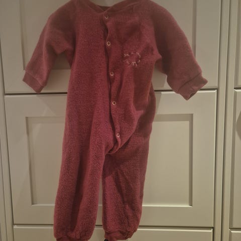 En nydelig støvrosa ull lue til baby fra Nøstebarn selges. Den har blitt reparert bittelitt på en side ( se bilde) og selges nå for 100,-