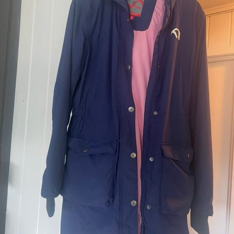 Kari Traa jakke i beige farge, størrelse L for dame. Jakken har avtakbar hette, knappelukking og lommer foran. Materialet og designet er egnet for utendørs bruk. Lett polstret, vannavvisende, pustende og lett.