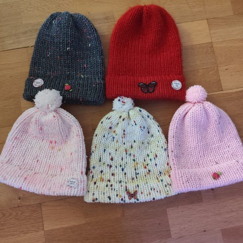 Hjemme strikka luer, votter og pannebånd til voksen dame