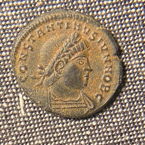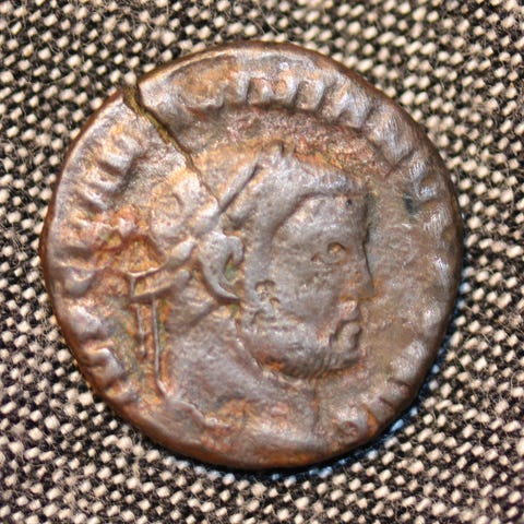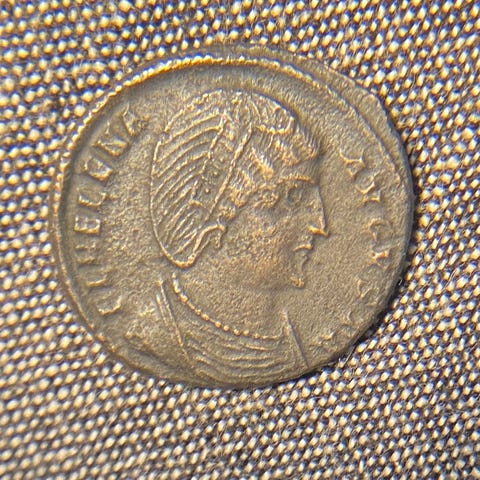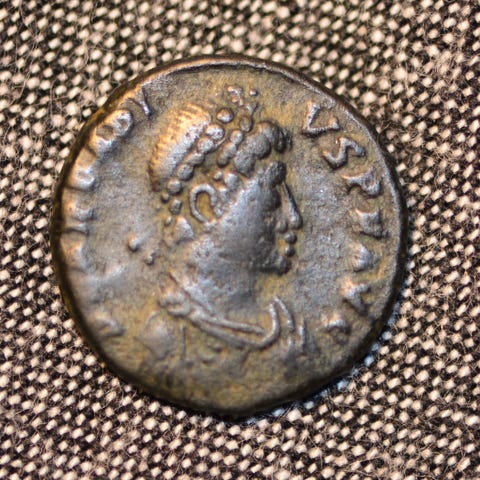 En pen liten romersk bronsemynt med velkjents SC på baksiden, som betyr at myntutgivelsen var godkjent av Senatet. Provincial Issues: On some provincial coins, particularly those from Antioch in Syria, a large "SC" within a wreath may also refer to the local authority or, more rarely, to the province of Syria Coele.