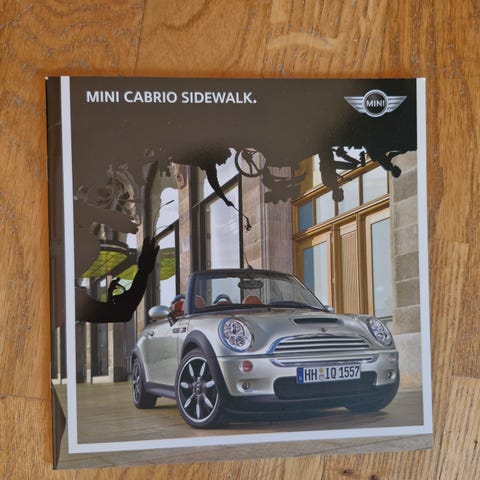 Bilbrosjyre Mini One, Mini Cooper 2001, 16 sider folder format 21x21 cm, norsk tekst, god stand (første Mini brosjyren), kr. 150,- + porto