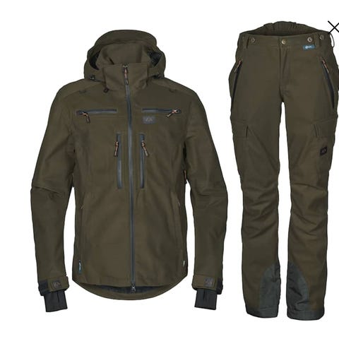 Jegma posteringspose i vintercamo, brukt en gang selges. Med belte i livet, snøring nede, jaktradio lomme og klaff til å ha over våpen når du sitter på post.