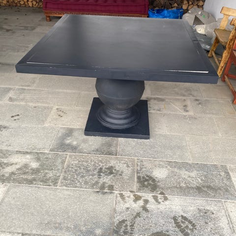 Betongbord selges, har vært brukt som spisebord. Bordet har sort stål understell og betongoverflaten er impregnert. Bordet er 180cm langt og 90 bredt. Betongplate 4cm tykk. Bordet ble spesiallagd på bestilling der vi valgte størrelse, tykkelse og understell. Total vekt på bordet er ca 150kg. Betongplaten ligger løst oppå understellet og kan løftes av. Selges rimelig da det er en sprekk midt på betongplaten (se bilder). Er usikker på hvor dypt denne sprekken går og hva som eventuelt skjer hvis man løfter av bordplaten. Selges pga av flytting og må hentes.