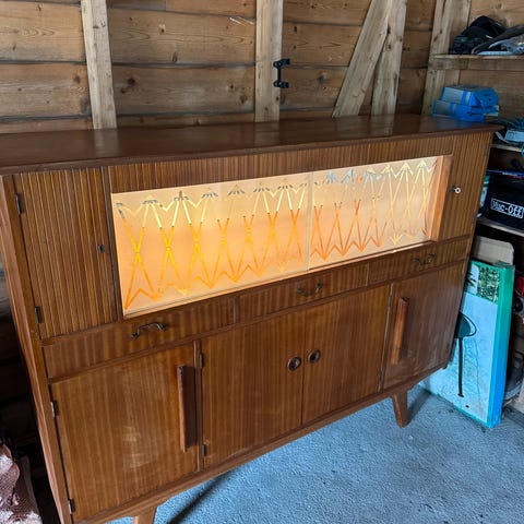 6 skuffer og 3 doble skap pluss 2 skap med 2 hyller. Der det er 2 vanger som står opp i luften kan det monteres samme skapdører som på venstre siden. 8 hyller totalt.