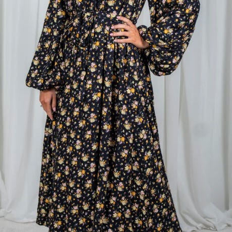 Kjolen har glidelås i front og puffede skuldre. Laget i et materiale som gir et mykt og komfortabelt uttrykk. 100% bomull! Passer til både hverdagsbruk og pent.