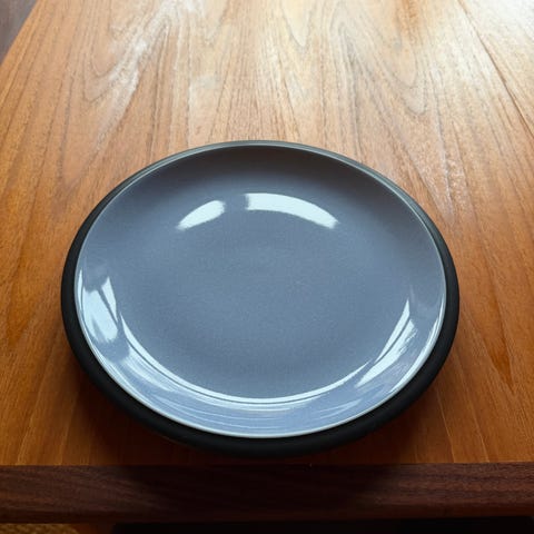 Skeidar tallerken sett i keramisk materiale med blå og hvite farger. Settet består av flere tallerkener med forskjellige mønstre, inkludert blå striper og blå prikker på hvit bakgrunn. Egnet for daglig bruk i kjøkken og spisestue.