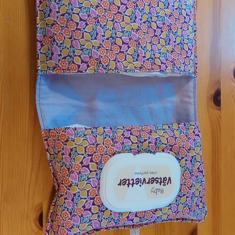 Stellevesken har knappelukking og flere lommer for oppbevaring av våtservietter, bleier, klesskift og småting.
