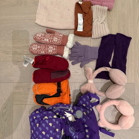 2 par ullsokker, 1 par votter, 1 par hansker, 1 søt lue fra Name It og 1 hals fra Devold.