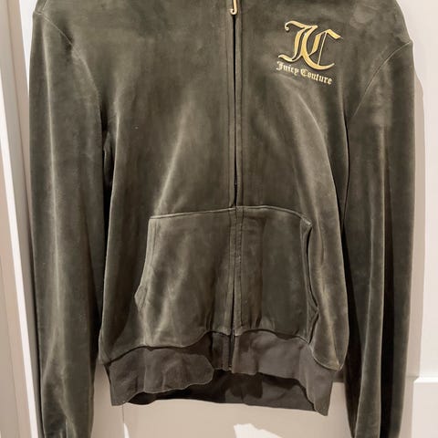 Pent brukt jakke i velur med hette. Svart med gull detaljer.