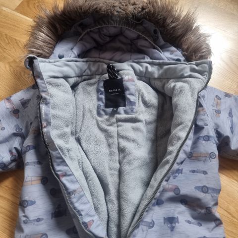 Vinterdress i størrelse 98. Mangler hette og litt slitt på rumpa. Mye bruk igjen, fin til barnehage.
