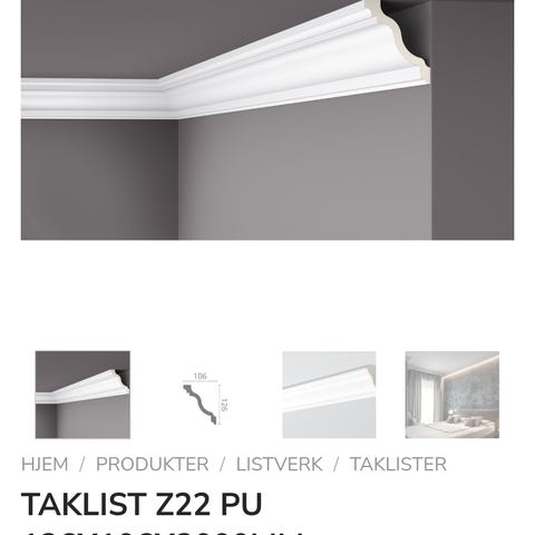 Ca 15 meter taklist selges. Betegnelse Klassisk 1956 hvit eller GR.MA. 20x70