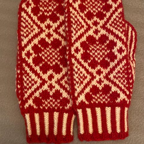 Hjemmestrikkede votter for passe små damehender 😊 votter i ull, og søte farger, så og si aldri brukt.