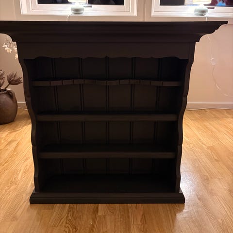 Hylle malt i dempet sort. Et lite sår i malingen.