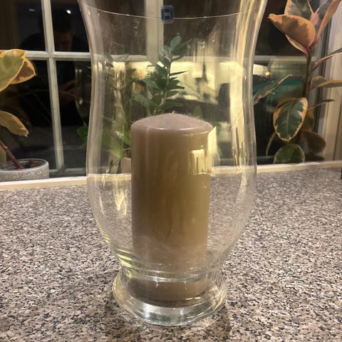 Selger et veldig lite brukt lyslykt/ vase fra Hageland glassverk. Høyde 27cm.
