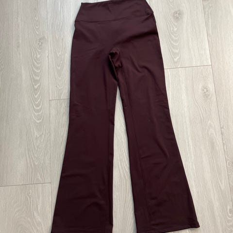 Sømløse dameleggings, perfekt for både sport og hverdagsbruk. Brun farge, tykt, ugjennomsiktig stoff, utsvingt kant, høy midje. Størrelse L, men passer størreS-M