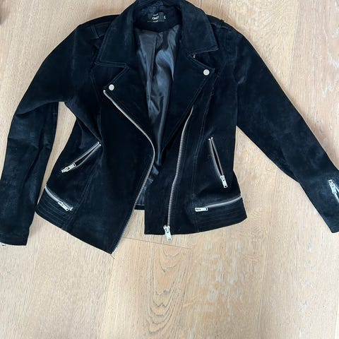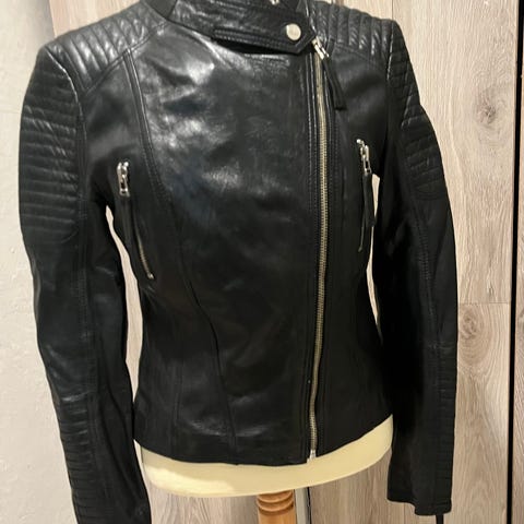 Kort Skinnjakke med tøffe glidlåsdetaljer